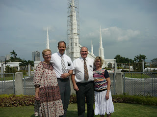 Elder and Sister Bremner drove us to Manila (abt 1-1/2 hours) on March 9. We drove to the Manila temple which was closed temporarily for repairs. The photo is of us and the Bremners in front of the temple. The Bremners are a senior couple in our mission and they live about half a block from us. She used to be Melanie Carlson and Leslie went to school with her in Cardston. Notice the workmen up on the scaffolding. They didn't have harnesses.